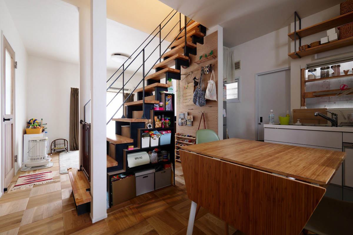 和室とダイニングスペースの間には2階への階段が。