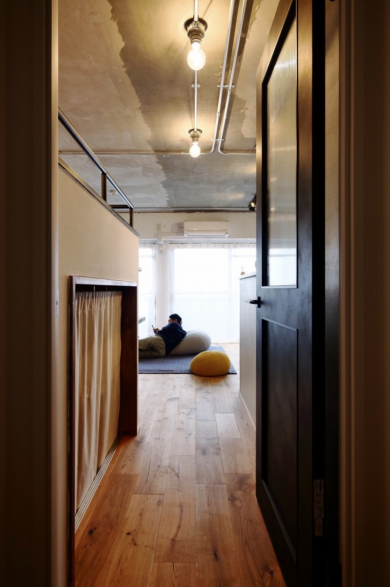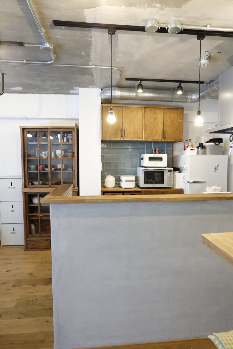無垢の床とモルタル、アイアンを基調としシンプルで可愛すぎない空間を演出しました。