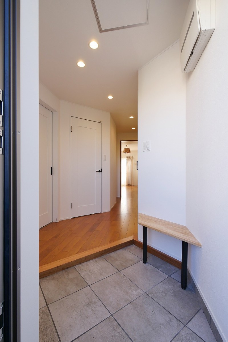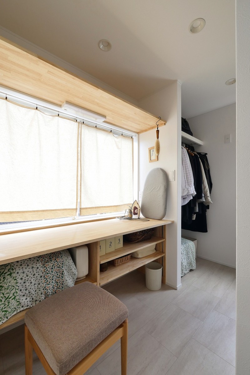 初めてお伺いさせていただいたのは夏真っ只中。3階のお部屋はとても暑く日中は過ごすことのできないほどあついお家でした。3階には書斎や寝室を設けるため、屋根には遮熱対策を施し1年中快適に過ごしていただけるようにしました。アウトドアがお好きなご夫婦でしたので、フリールームにはデッキなどに使う素材を採用しアウトドアな雰囲気を楽しめる空間に。玄関やカウンターテーブルは角度をつけ空間を有効活用しました。
