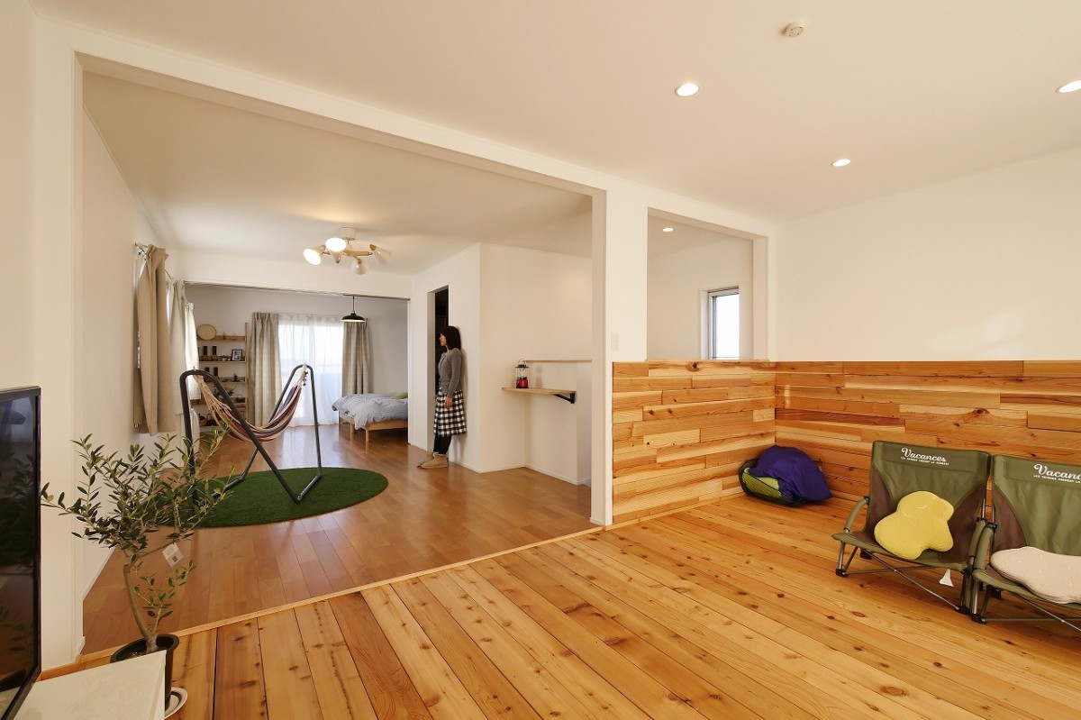 南側のお部屋はインナーテラスをイメージし、床材にはウッドデッキなどに使用される、レッドシダーを採用。