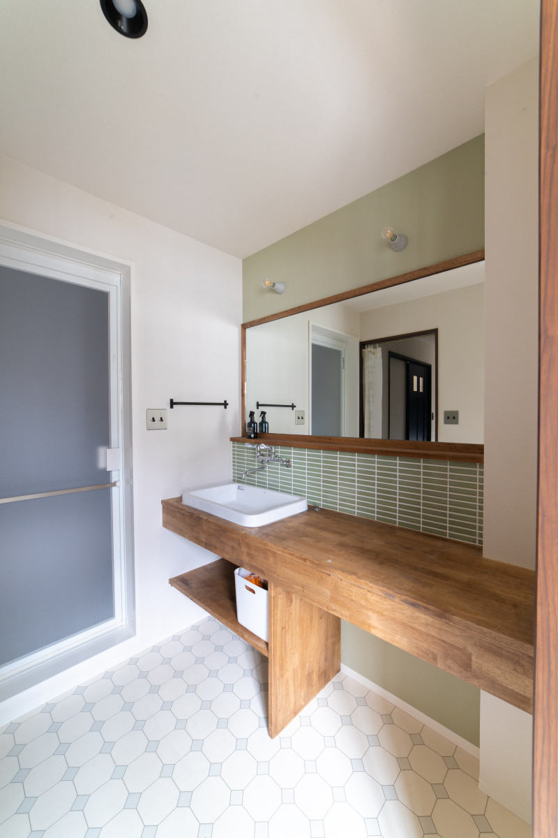 また、キッチンの手元が見えないよう少し立ち上げた位置にカウンターを造作し、カフェやバーの店のような雰囲気のあるキッチンに仕上がりました。