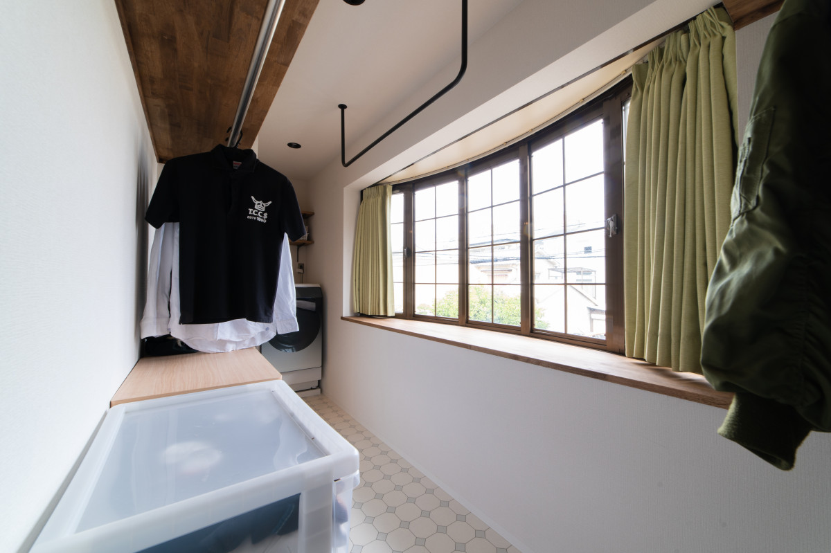 1階には車2台分が入る広いガレージが元からありました。今回は内部の壁をO様のDIYで塗装しただけですが、それだけでO様好みのガレージにできる事が、予算の面からも物件選びでの重要なポイントだったそうです。
