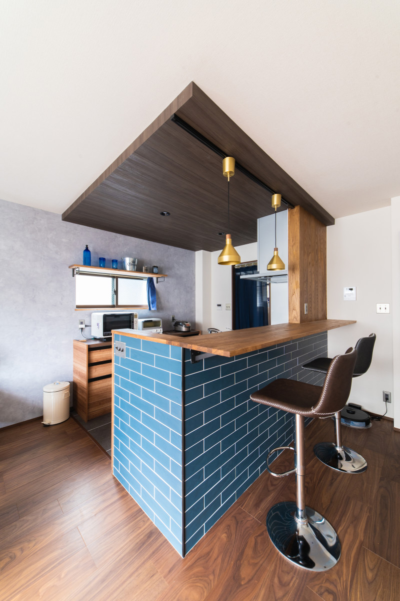 ▼ポイント①「ブルータイルが主役のカウンターキッチン」