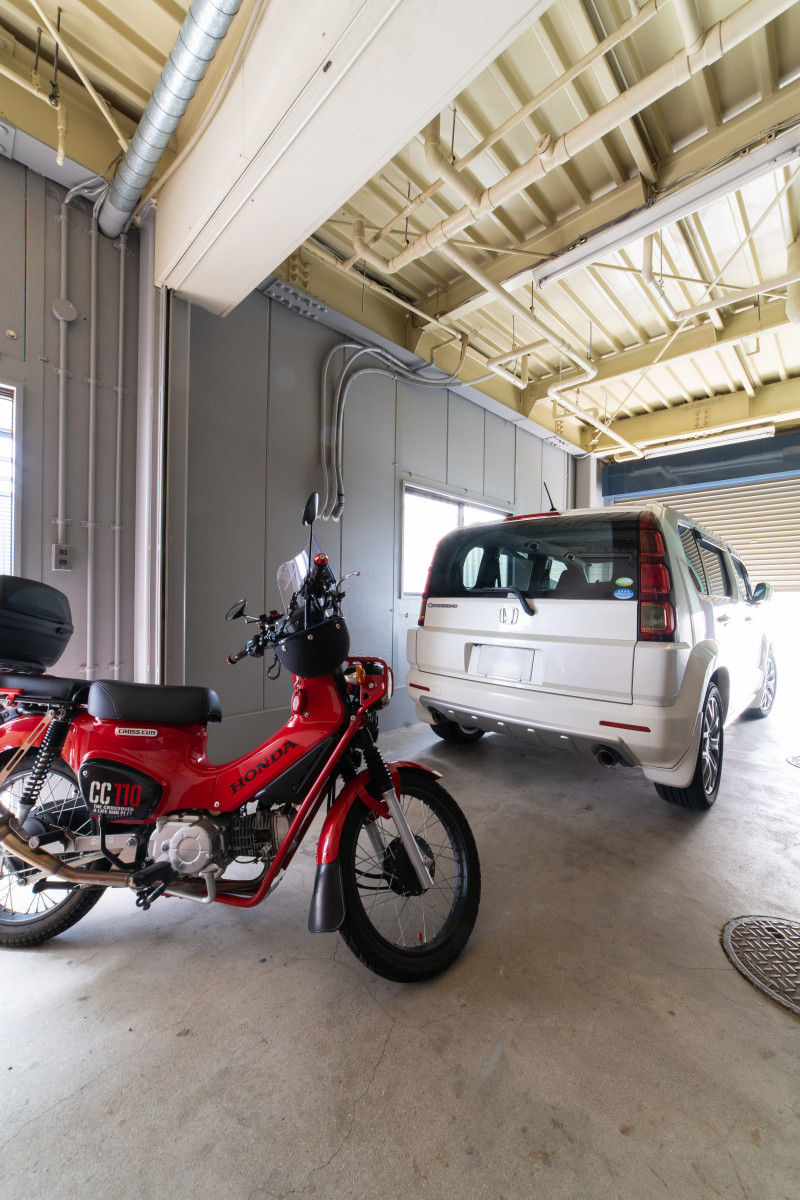 休日はここにこもって車やバイクの整備をしたり、サバイバルゲームの射撃練習などもできるほど広く、趣味を満喫できる男の秘密基地となっています。