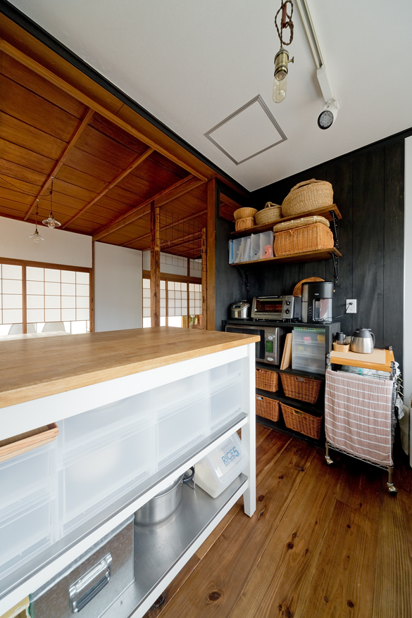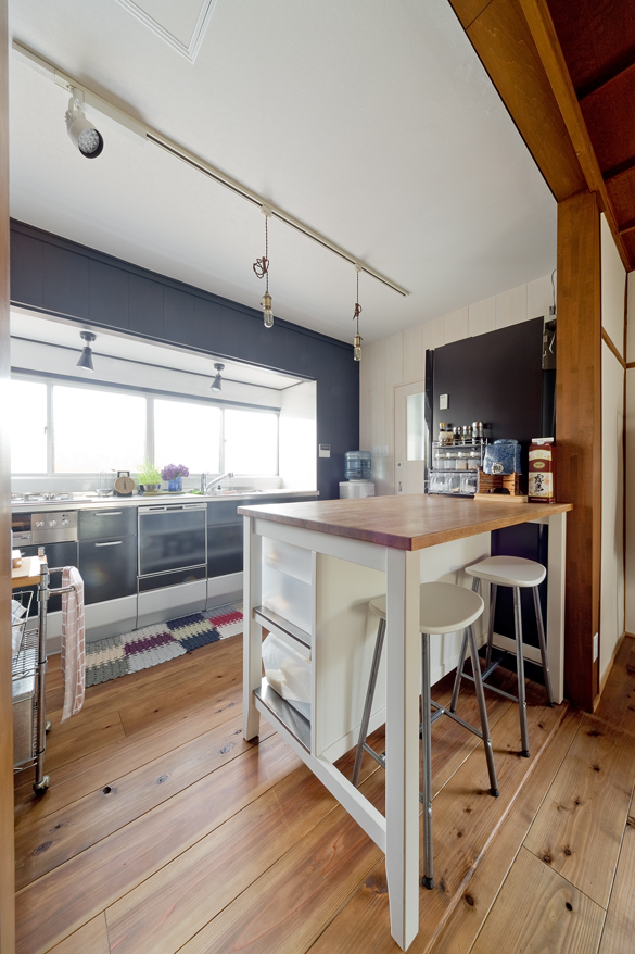 もとの和風なお家の雰囲気を気に入られていたため、なるべく既存の素材を活かし新しくしたところがなじむよう手を加えました。とても仲が良く、センスの良いY様ご夫婦、『自分達でできるところはしたい』おっしゃられていたので、床や壁の塗装はDIYをとりいれながら一緒に施工しました。既存の素材の有効活用とDIYを取り入れることによりコストダウンをはかりました。