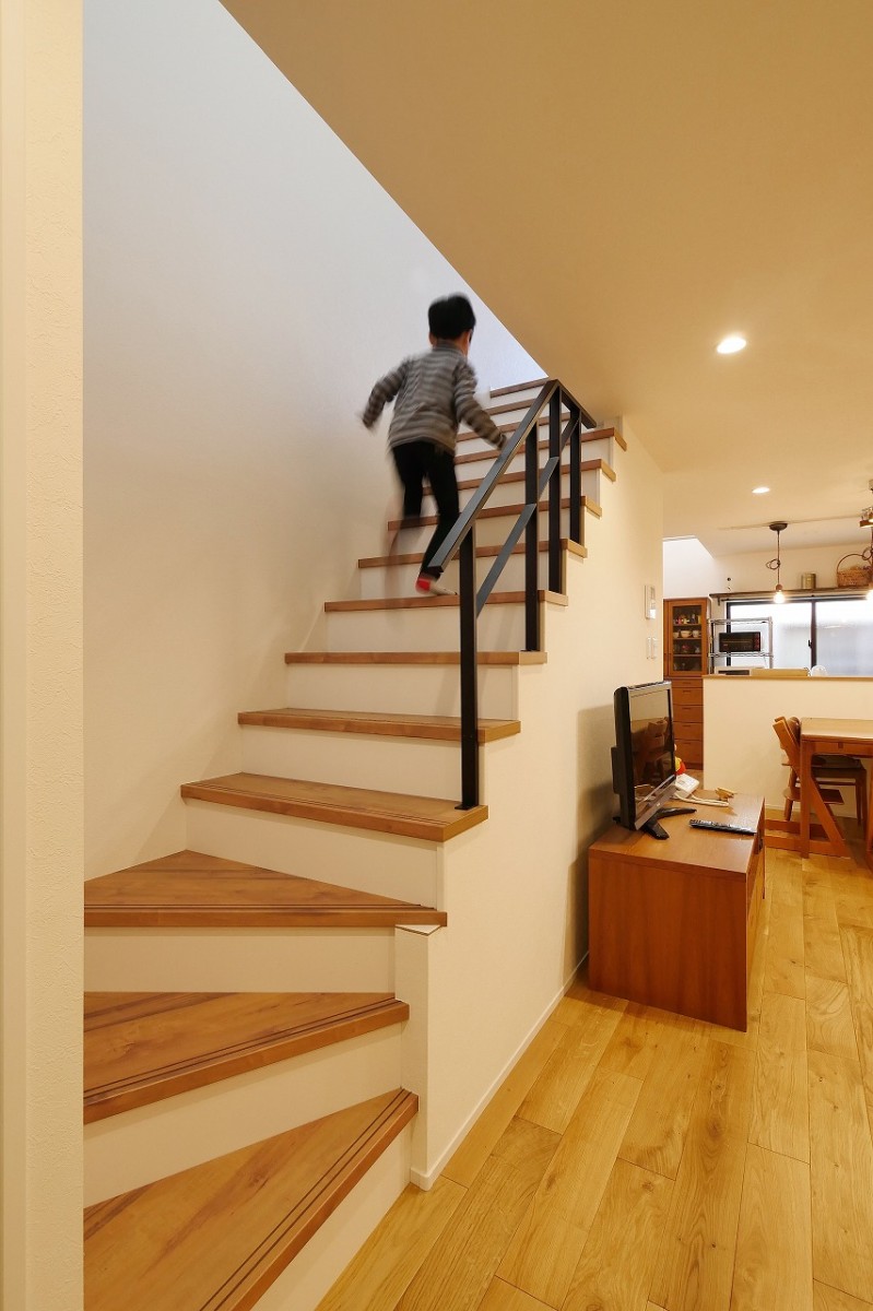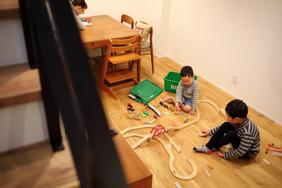 そして奥様のご要望から床にはナチュラルオークのフローリングを採用し元気なお子様たちが裸足で走り回れる空間となりました。