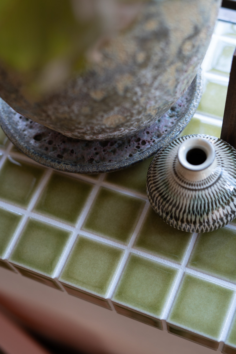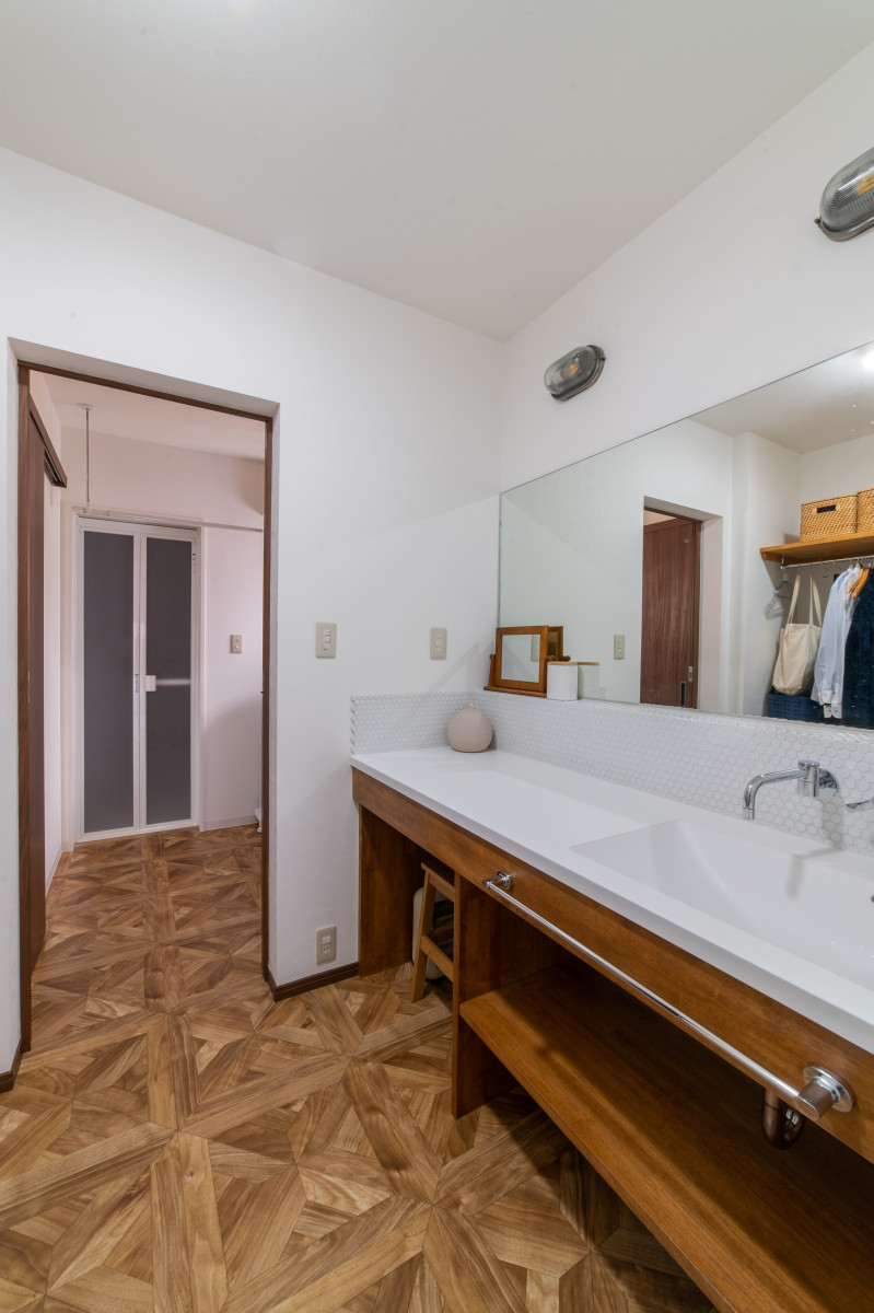 各所に種類、サイズ、色の違うレトロなタイルを採用し、雰囲気を出しつつ飽きのこない計画になっています。