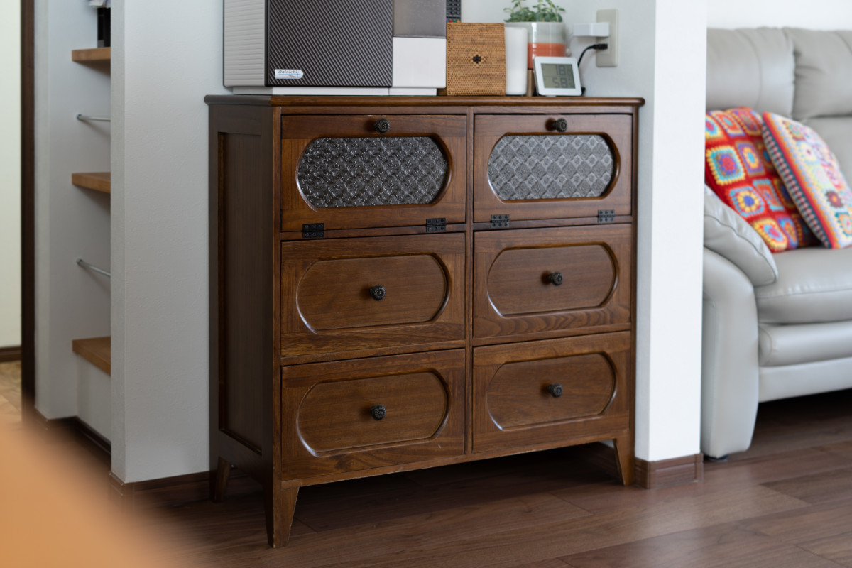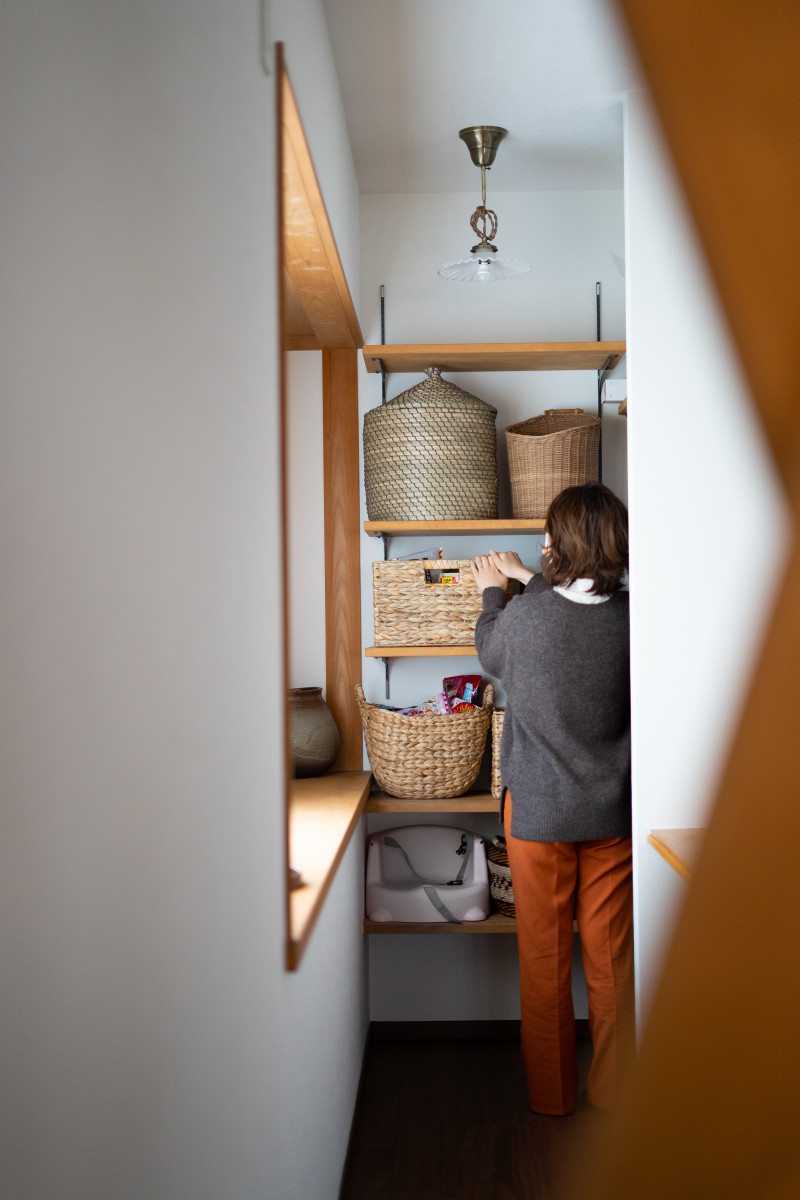 備蓄品も含めて使う物が、使う場所に収納されているのは、生活動線がその部屋の中だけで完結されるので良いですよね。