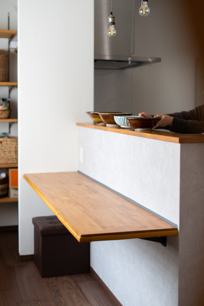 施主様が元々お持ちの棚や食器類も相まって、レトロな落ち着きのあるリノベーションとなりました。