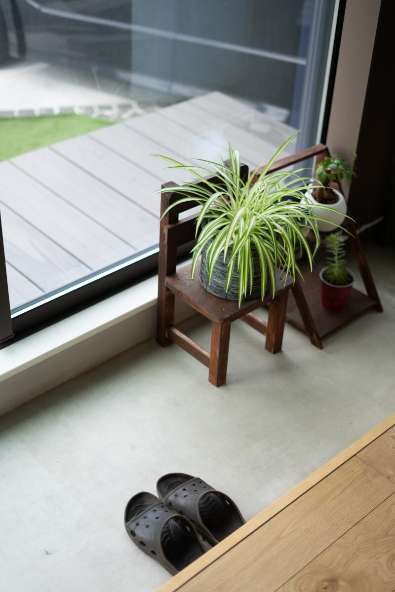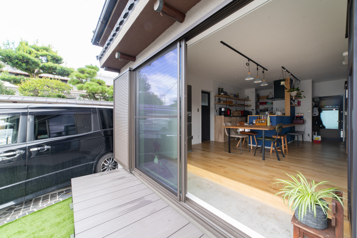 さらに、和室に面した縁側は土間に。玄関以外の外動線が加わり、駐車場へのアクセスが便利になりました。植物の世話や犬のブラッシングなど、土間ならではの過ごし方も増え、生活がより快適で豊かに。