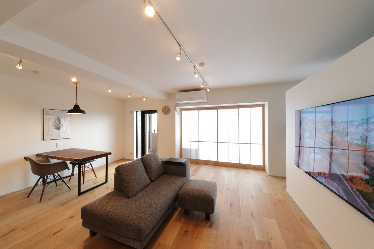 元々3部屋に分かれていたうちの2部屋をLDK、1部屋を寝室とし、