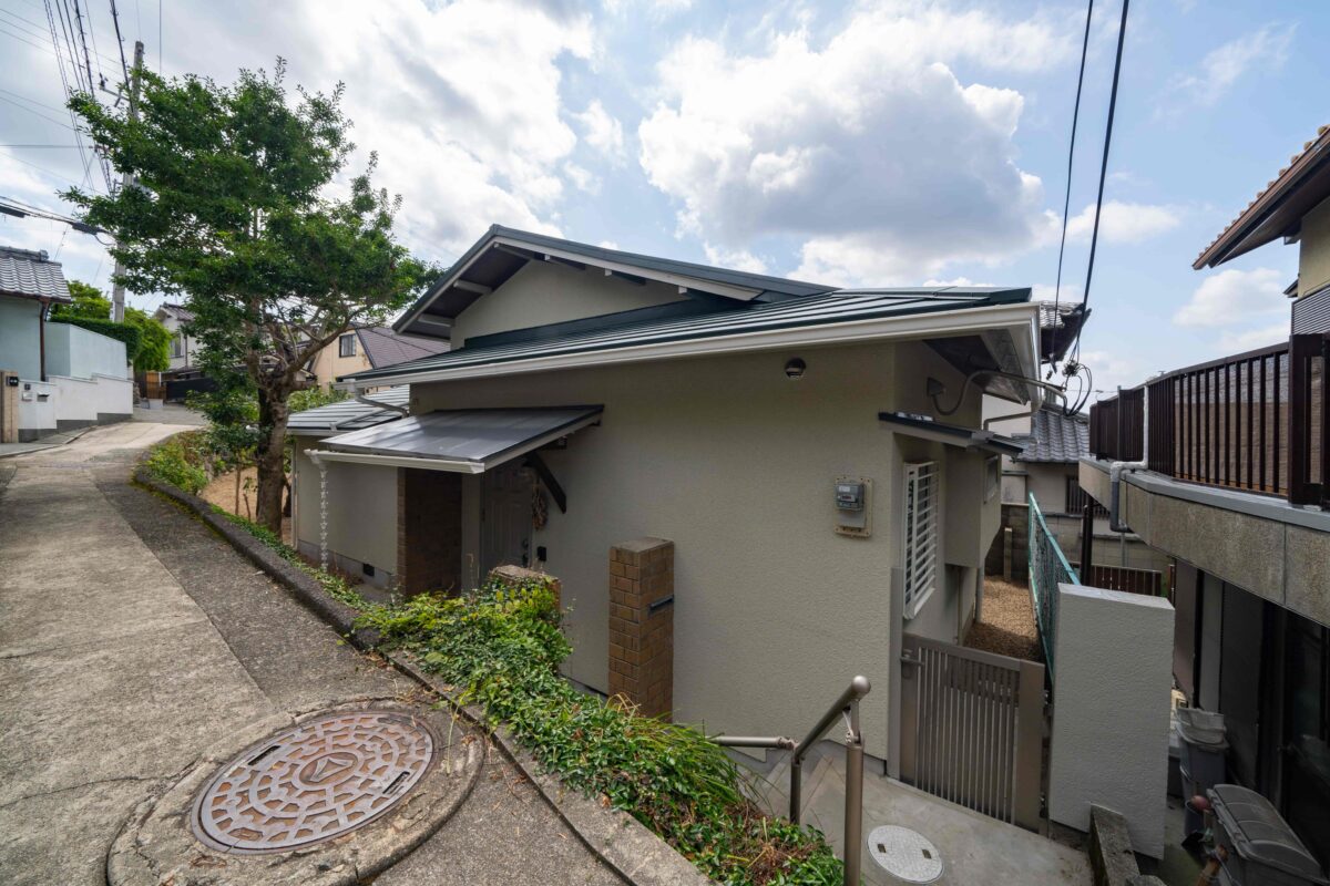 重い瓦からガルバリウム鋼板に葺き替えた屋根。軽量でありながら耐震性・遮熱性にも優れています。
