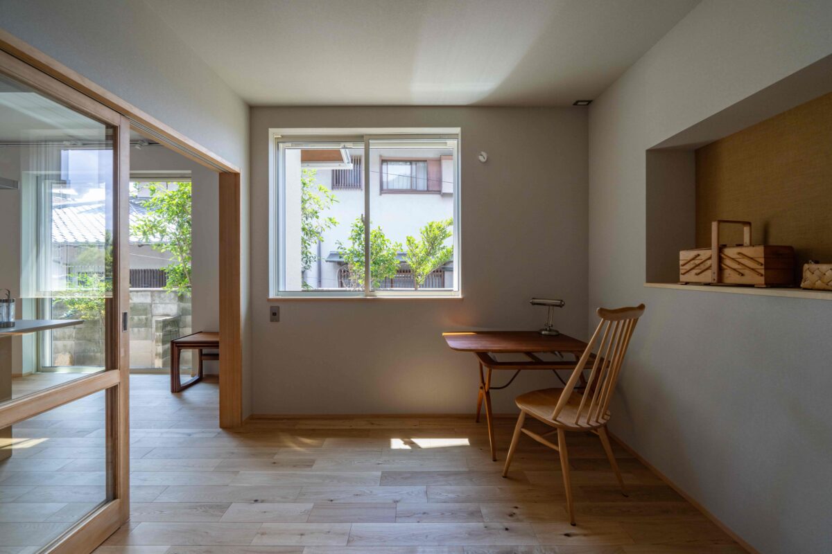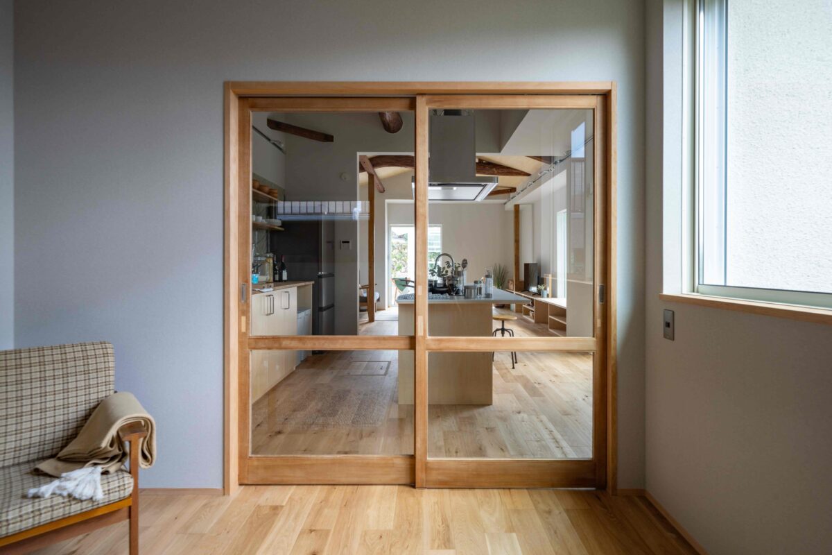 リビングと洋室を繋ぐのは、既存を活用した建具。使えるものは使って、次に繋げる。時代を受け継ぎながら、新しい暮らしに馴染む住まいへ。