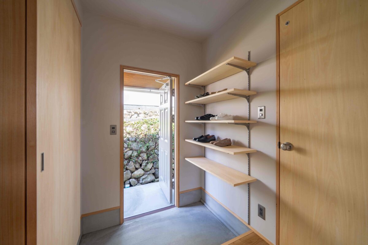 一人暮らしには十分な靴棚。可動棚にすることで、ブーツやちょっとした収納にも対応可能。