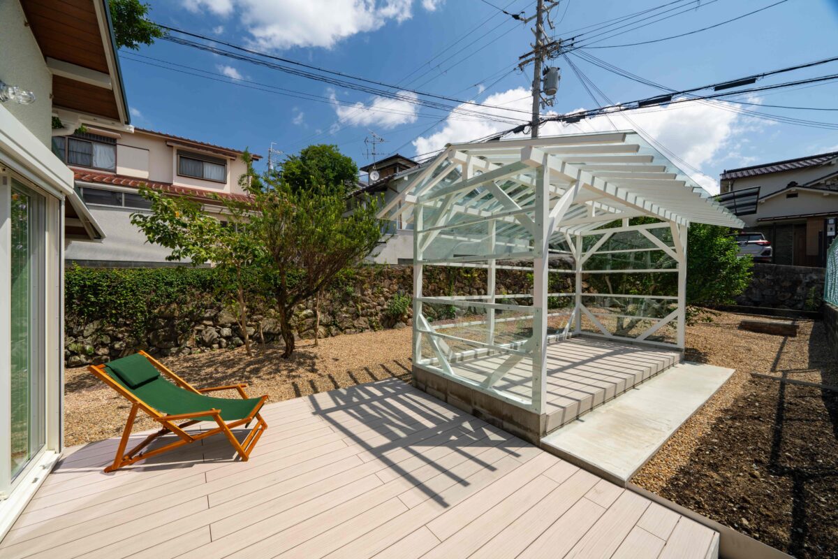 リビングから繋がるウッドデッキ。外に出て深呼吸から始める一日を。
