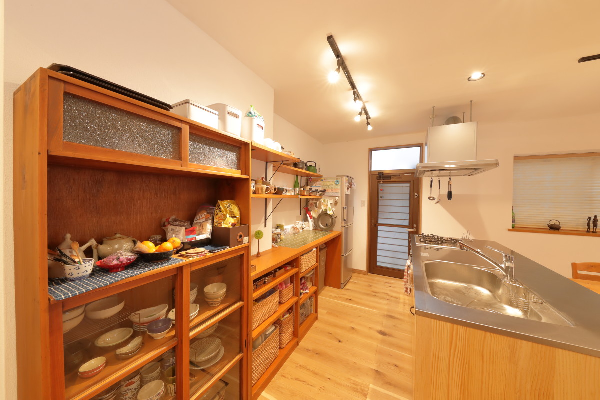 その結果、古建具に囲まれたキッチンで料理を存分に楽しむことのできるこだわりの詰まったお家になりました。