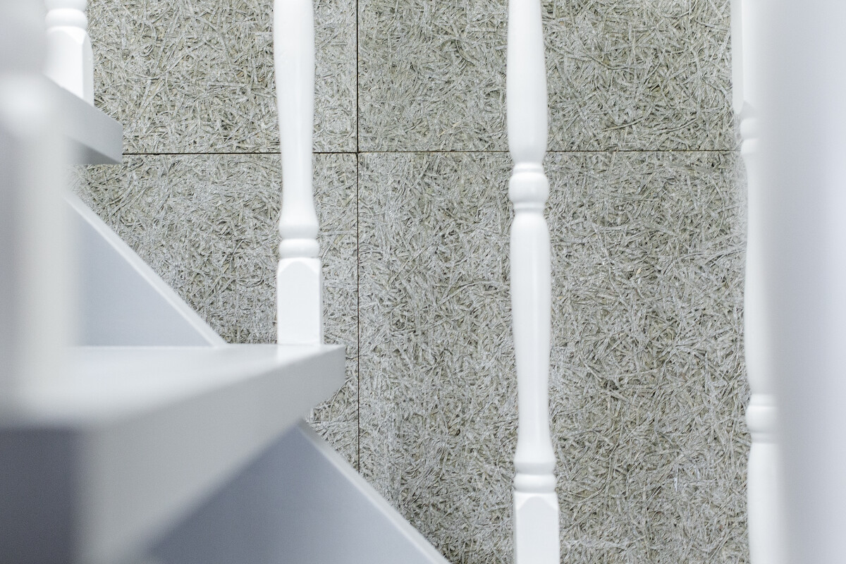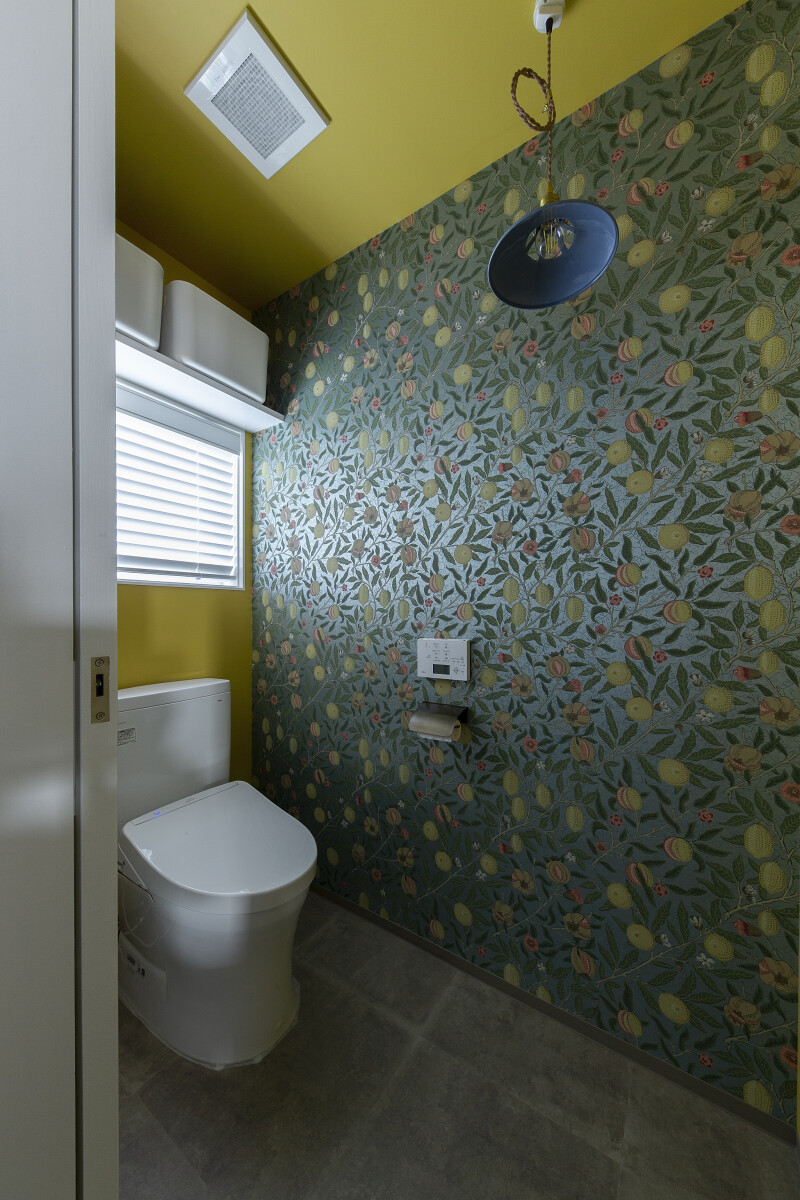 世界中から愛されている19世紀の芸術家ウィリアム・モリスの意匠を甦らせた壁紙や、木毛セメント板、巾木(はばき)など特徴的なデザインのものを採用し、空間に遊び心を加えています。