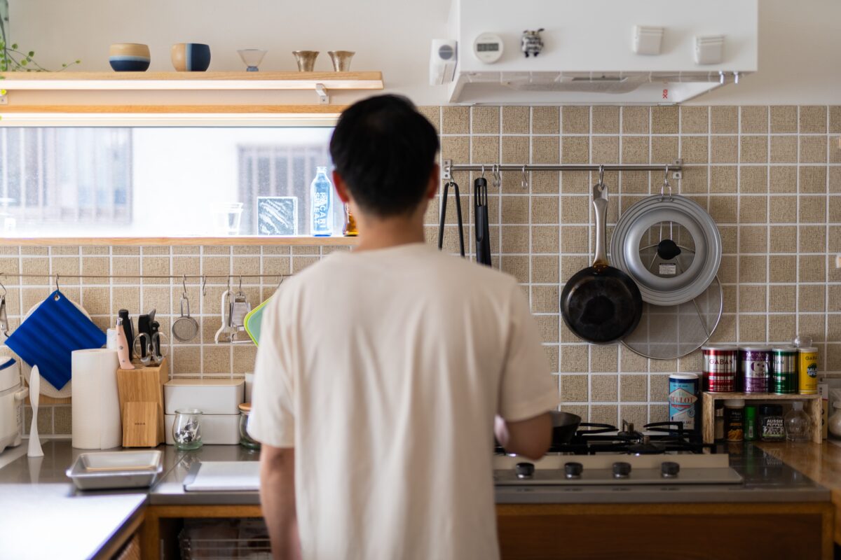 その中で、料理好きのご主人にご満足いただけるキッチンのレイアウトや、ミシンやネイルをされる奥さまの作業スペースをどう設けるか、色々と思案しました。最終的に、作業スペースを最大限確保したL字型の造作キッチンや、家事と一緒に趣味が楽しめる造作洗面をつくらせていただきました。