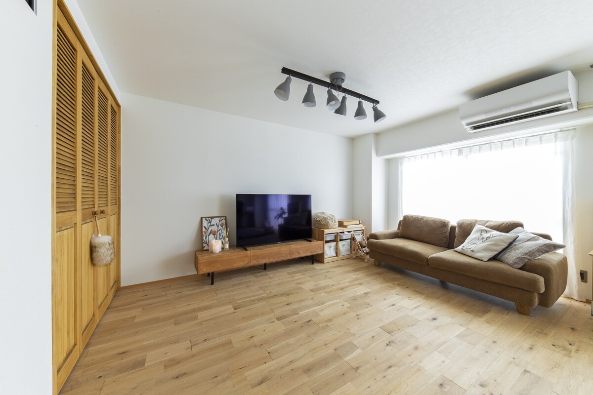 床は遊び盛りのお子さんに合わせナラの無垢材を使用。強度が強いためオモチャなどのキズにも耐え、仕上げは自然塗料なので安心です。