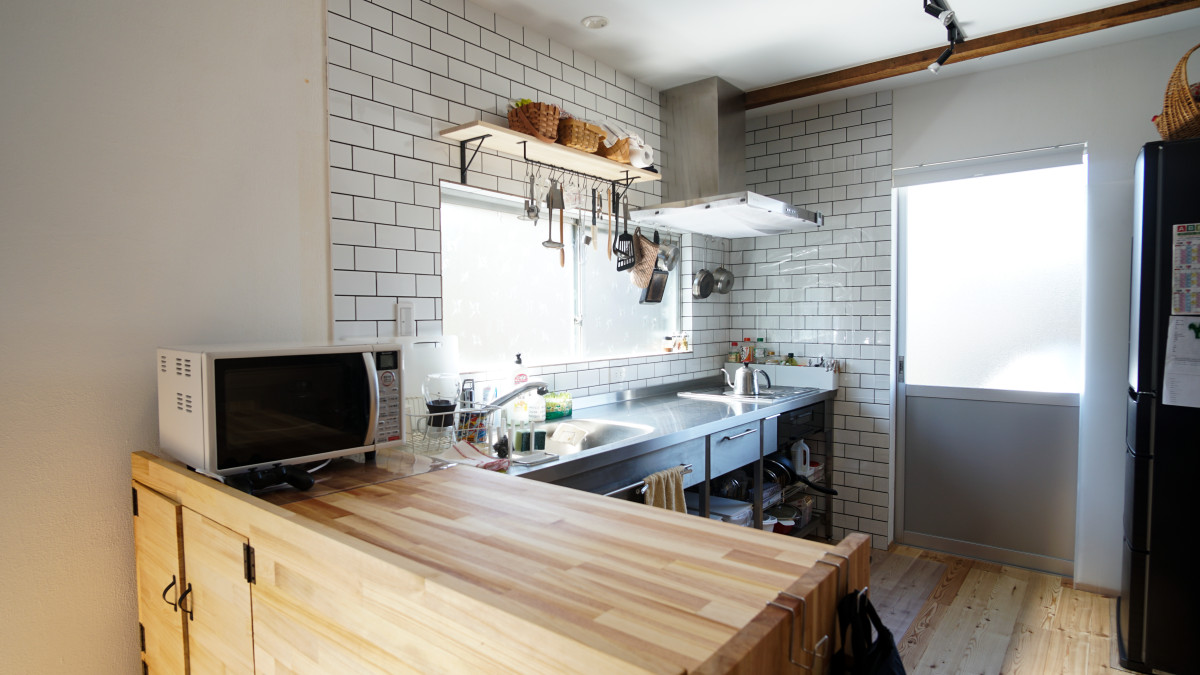 Y様がDIYがお好きだと言う事で、キッチンカウンターを集成材を使いDIYされていて、サンダーをかけて、角もとって、とても完成度が高く驚きました!
