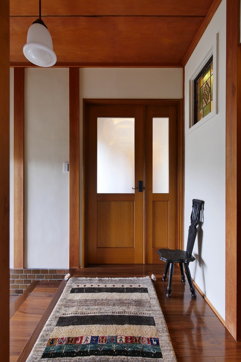初めてお家にお伺いさせていただいた時、お打合せさせていただいたお部屋はダイニングキッチンなのに暗いという印象をうけました。一番長い時間を過ごすLDKを心地のよい空間にするために、南側にある一番光の入る二部屋の和室があった場所にLDkを配置しました。築50年の立派な木造平屋の家屋だったので、なるべくお家の持っている趣のある素材を活かしたいと思い、既存の建具やガラス、欄間などは手を加えて再利用させていただきました。