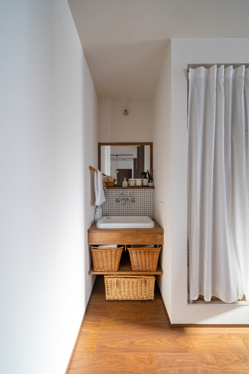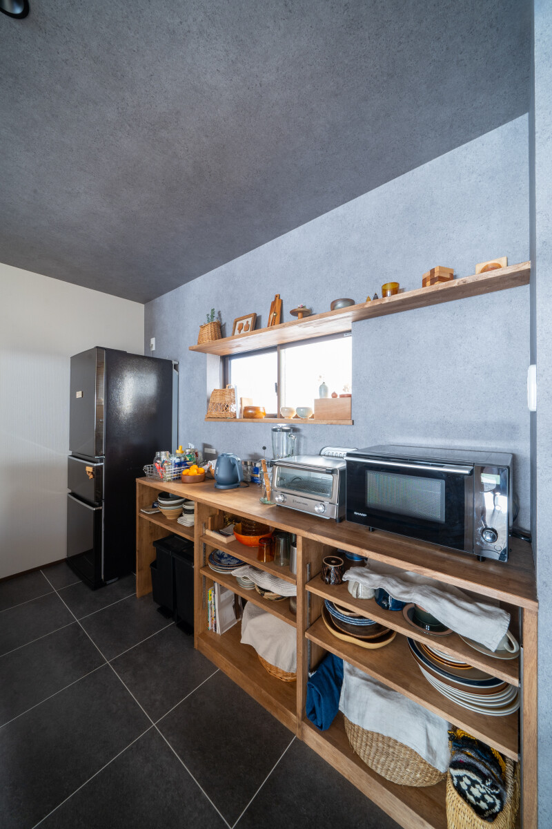 1階は親世帯が、2階は子世帯が住む半独立タイプのプランを採用。1階は親御様のご希望でほぼ手を加えていませんが、2階はもともとあった部屋数を半分以下に減らし、広々としたLDKに加え、パントリー付きのキッチンも新たに設けています。