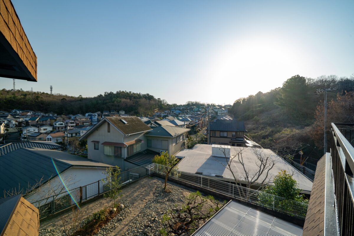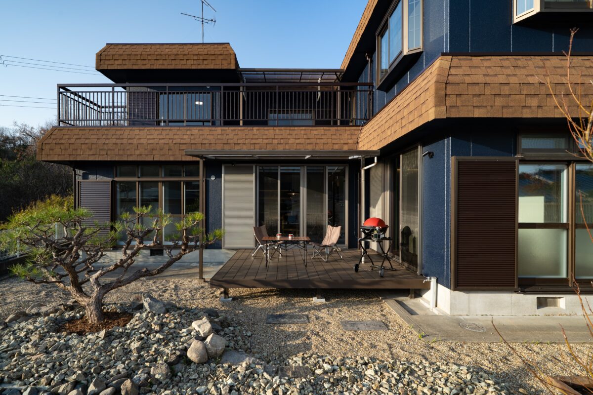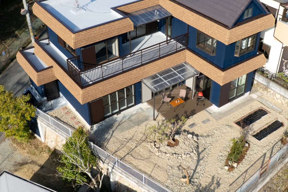 庭の一部には家庭菜園スペースを設けました。郊外ならではのゆとりある敷地で、隣家との距離も確保され、開放感のある庭となっています。