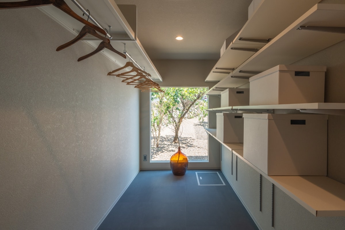 また造作したベンチや家電収納棚、WICを設けることで、申し分のない収納を確保。