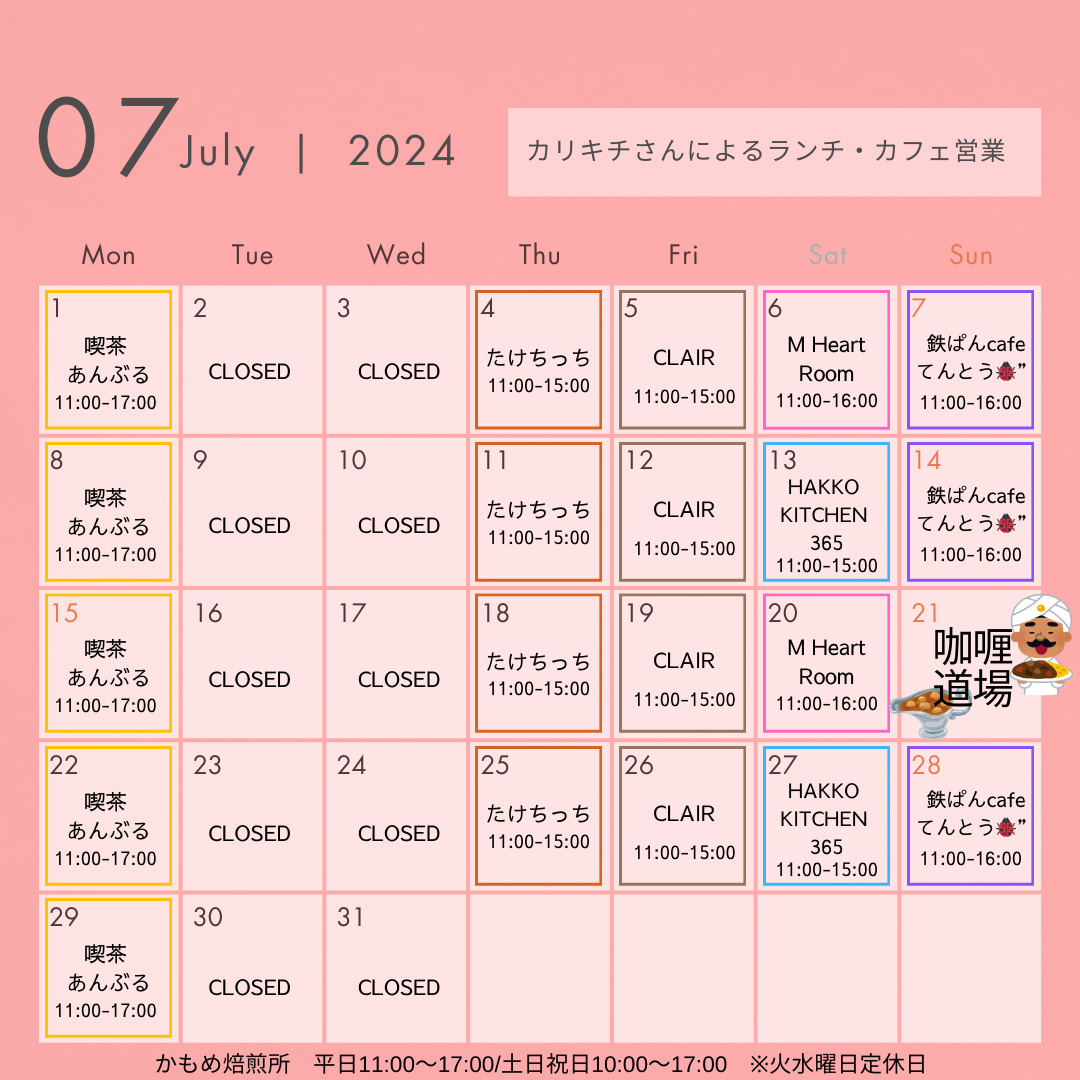 【カリキチさん営業カレンダー】