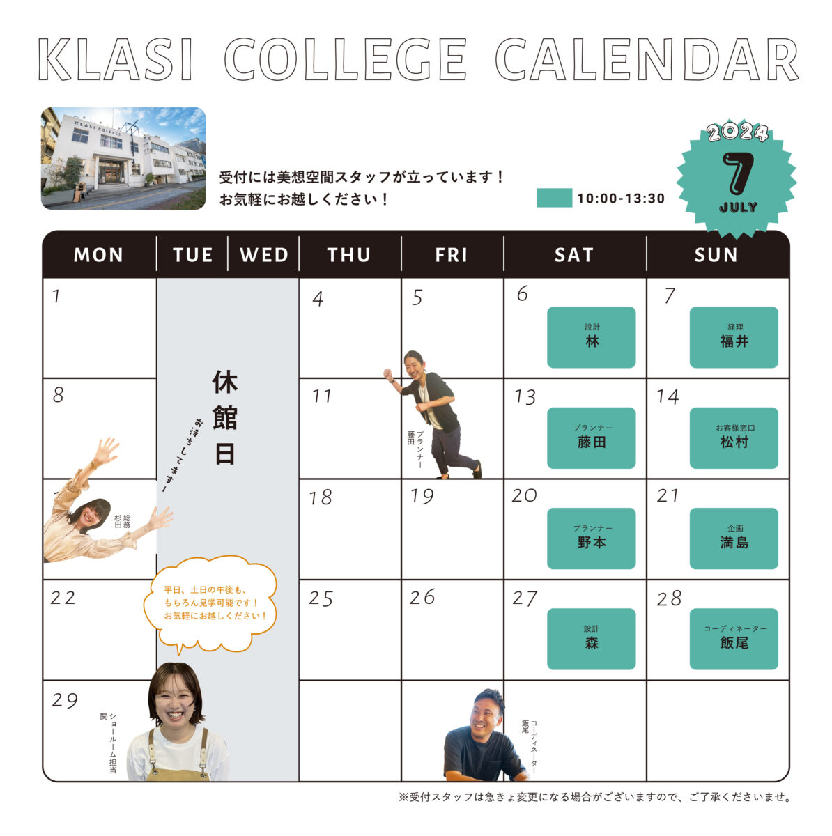 美想空間が運営するショールームKLASI COLLEGEでは、週末は美想空間スタッフが受付に立っています!