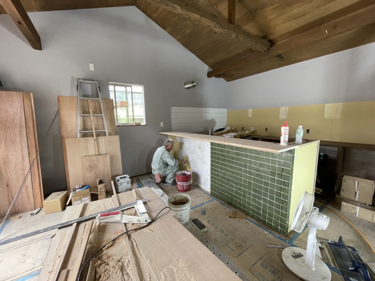 採用されたのは、うぐいす色を意識したスクエアタイル。