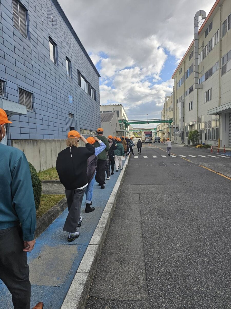 皆でLIXILキャップを被り、さっそく工場へ!