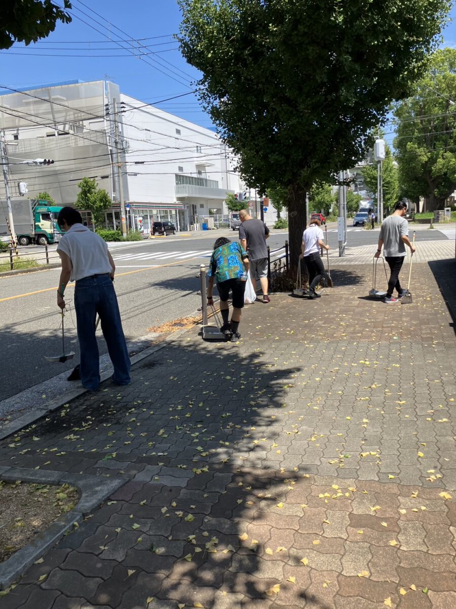 朝から築港エリアリノベーション協議会のメンバーで集まり、近隣の清掃からスタート。