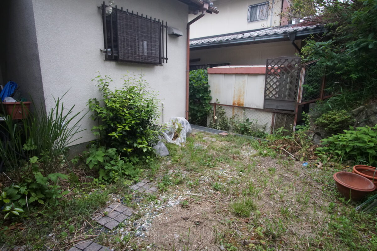 植わっている草木はきれいさっぱり刈り取りました。そこに基礎石を敷いて、固定していきます。