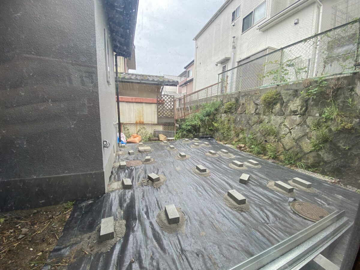 梅雨の時期も相まって、なかなか進まなかった外構工事。