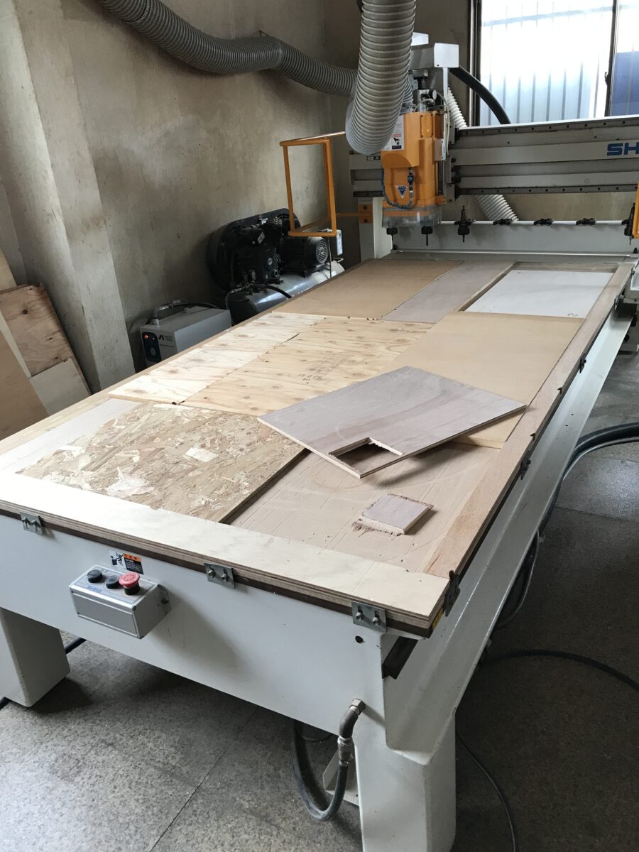 機械にデータ入力するとその通りの形に木材が切り抜かれます