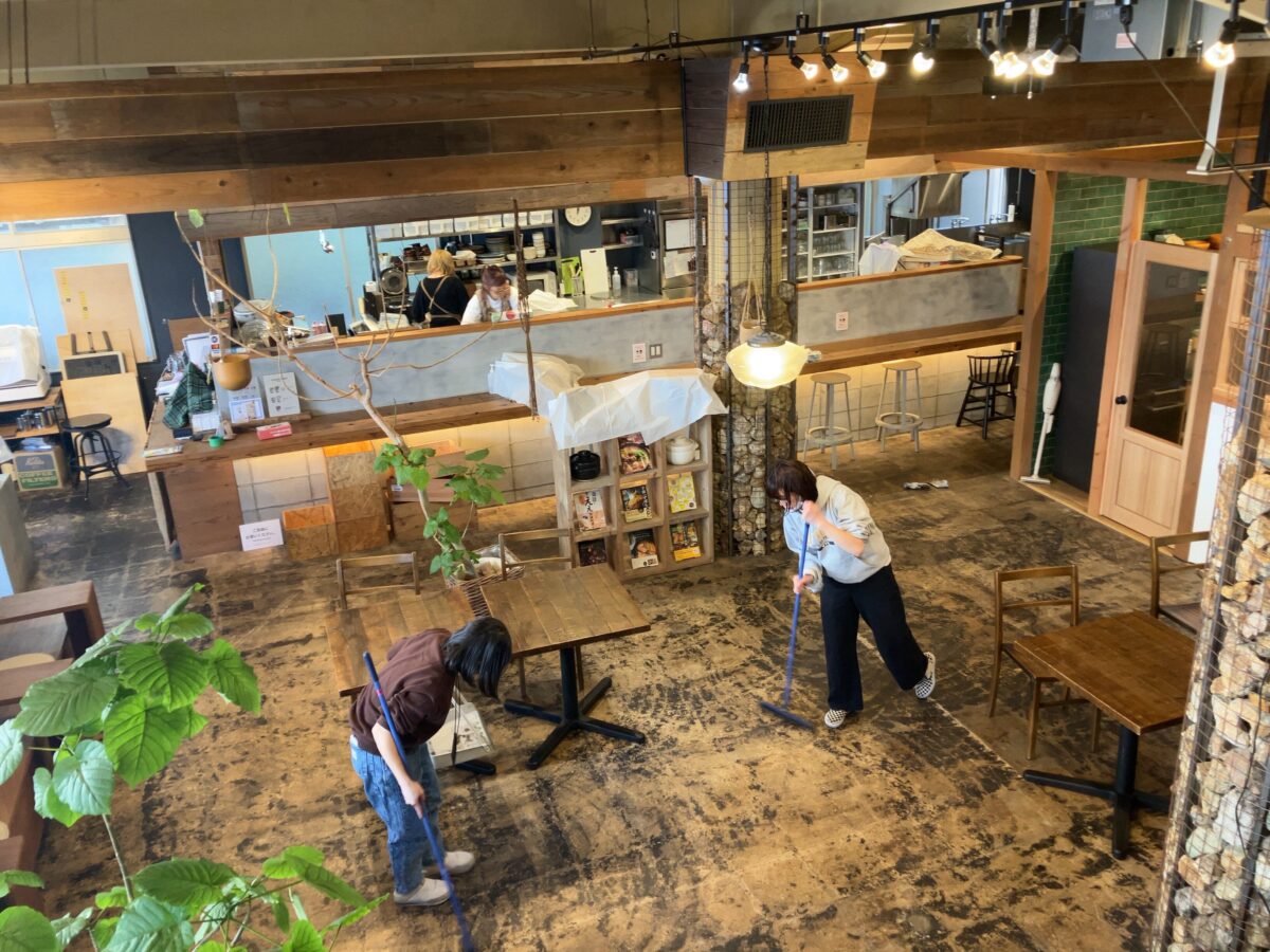 カフェもしっかりお掃除。