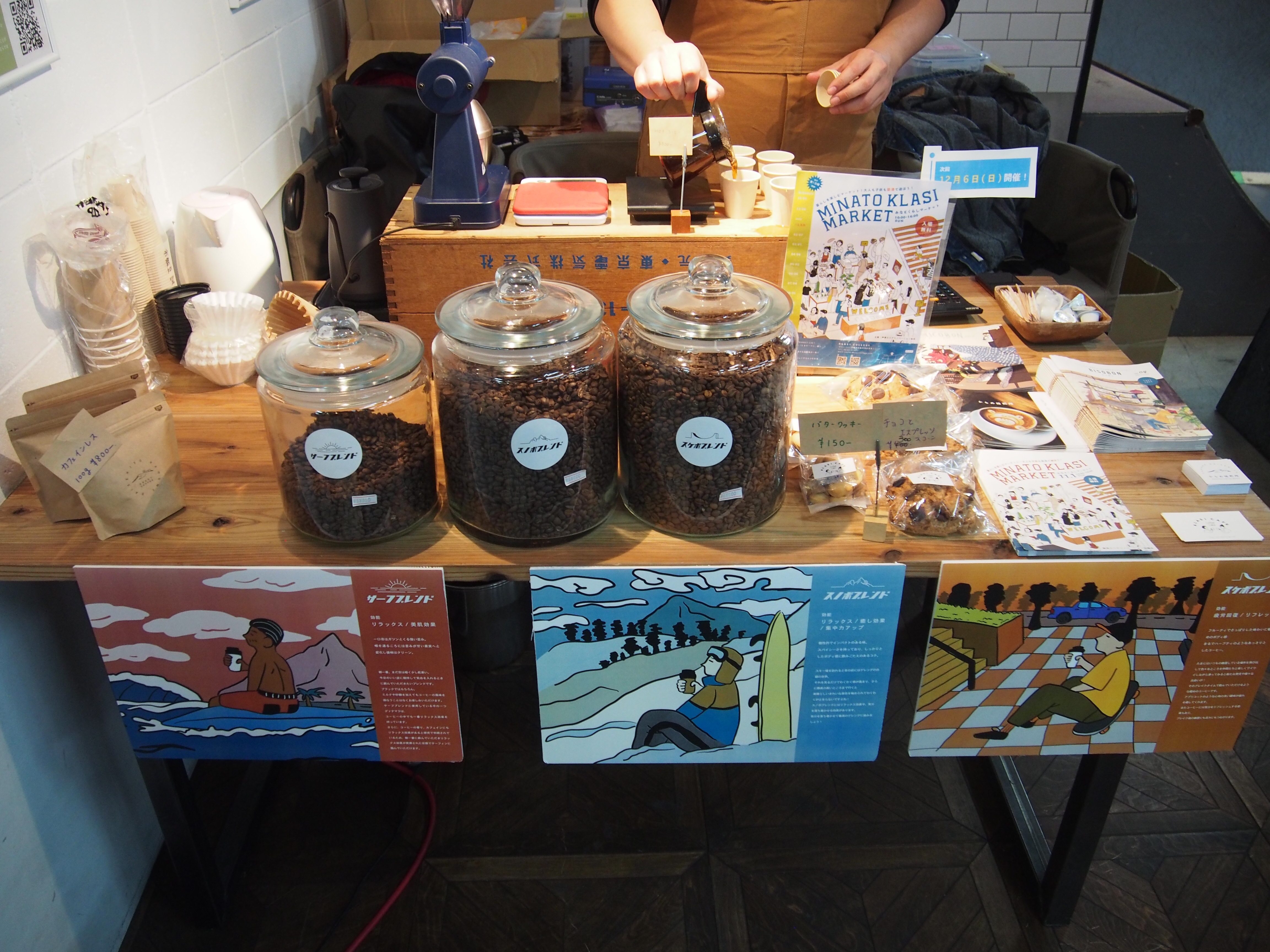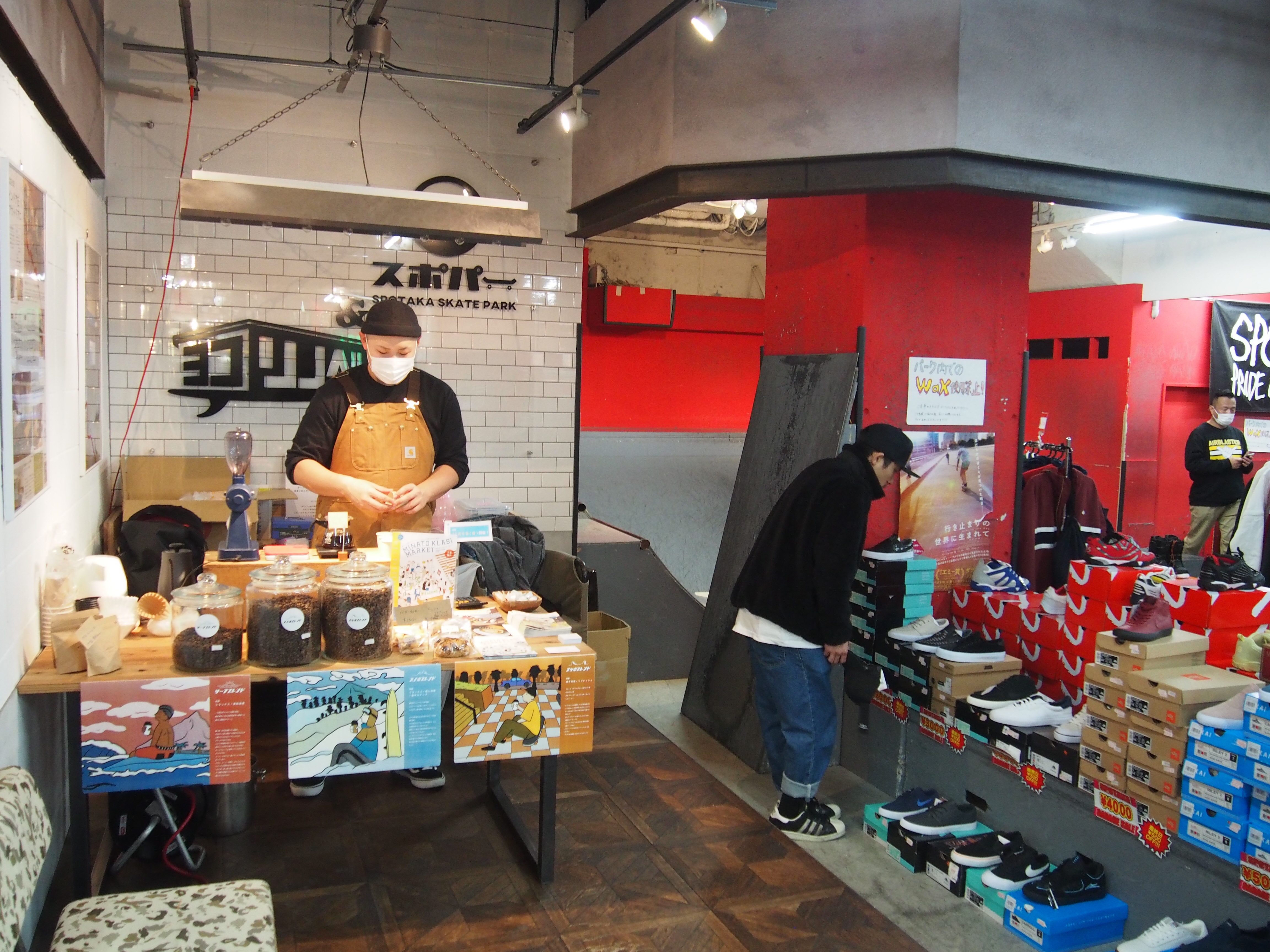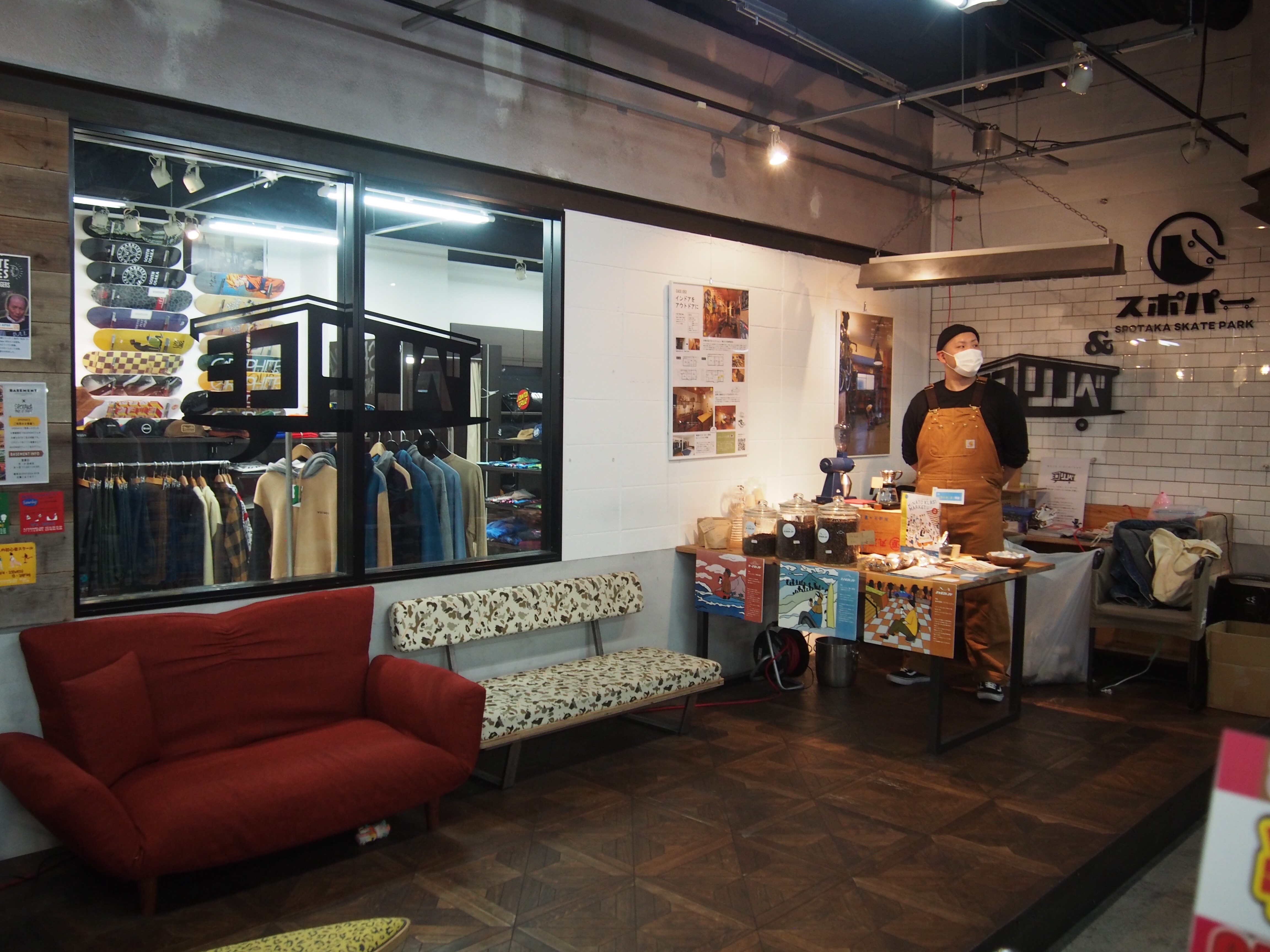 先週末、心斎橋BIG STEPにあるスポタカさんで コーヒーイベントを開催しました! ヨコノリスポーツ愛好家のためのリノベーション 「ヨコリノベ」 のコンセプトをスポパー内に再現した空間を使用。 普段はスケボーパークとして開かれている場所には ヨコノリアイテムが所狭しと並んでいました。 会場はこんな感じ。 サーフィン・スノーボード・スケートボード それぞれのヨコノリに合わせたオリジナルブレンドのコーヒーを販売。 その場で豆を挽いて試飲も。 今後もスポタカさんと一緒に 面白い企画をどんどん行なっていく予定ですので、お見逃しなくっ!!