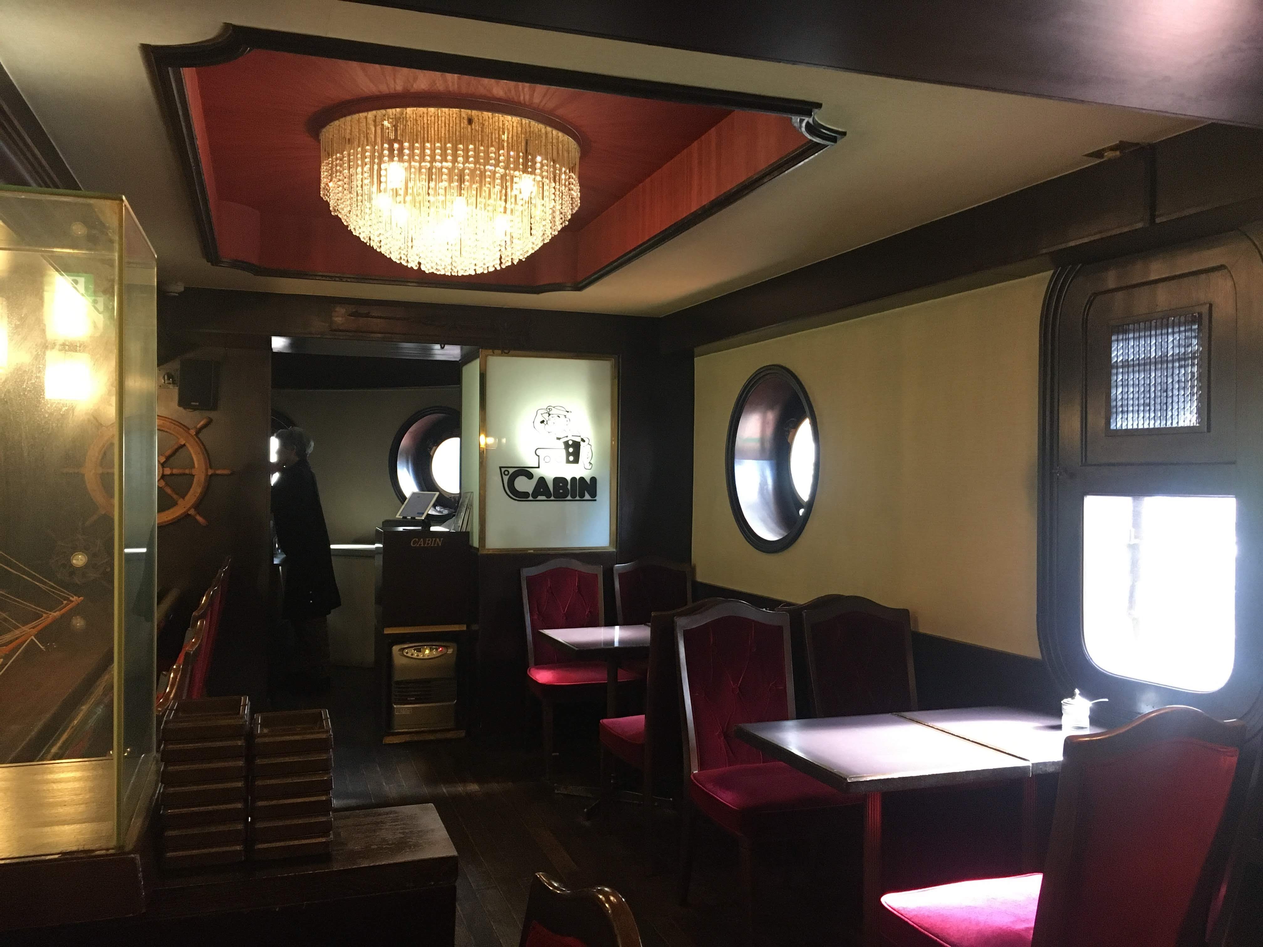 こちらもなんばの喫茶店です。道頓堀沿いに地下にあり、潜水艦のようなデザインが特徴的です。