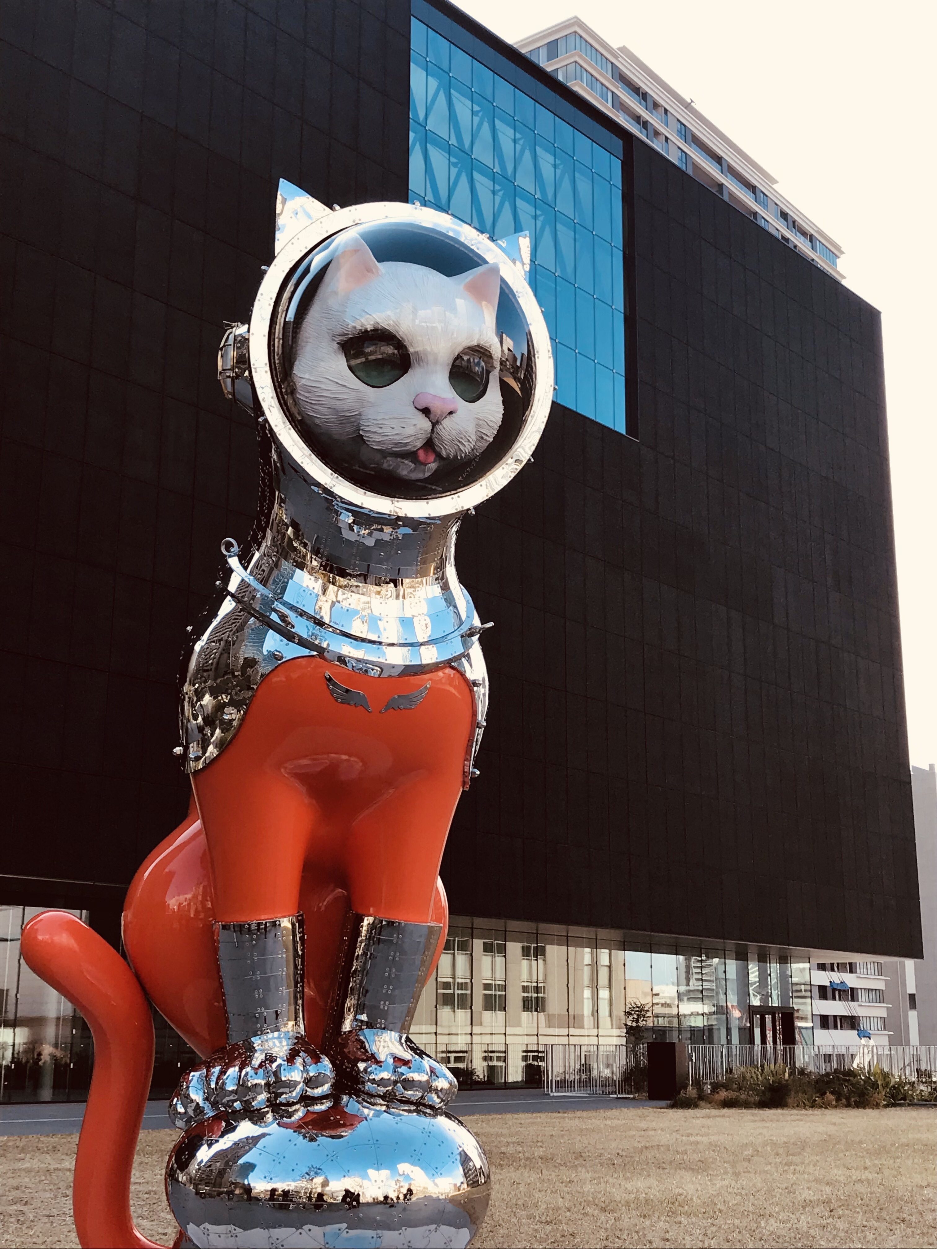 堂島川に面した入口に、ひときわ存在感を放つ巨大な猫のオブジェ。『SHIP’S CAT』