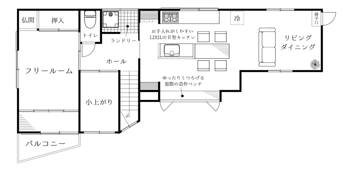 キッチンはLIXILのⅡ型を採用!ダイニングテーブルを横付けすることで配膳や片付けも楽々です。