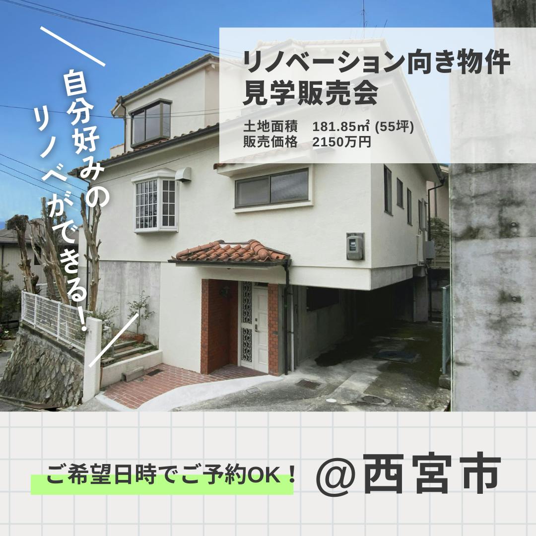 西宮市甲陽園にて、「リノベーション向き中古物件(工事前物件)」の見学・販売会を開催いたします!
