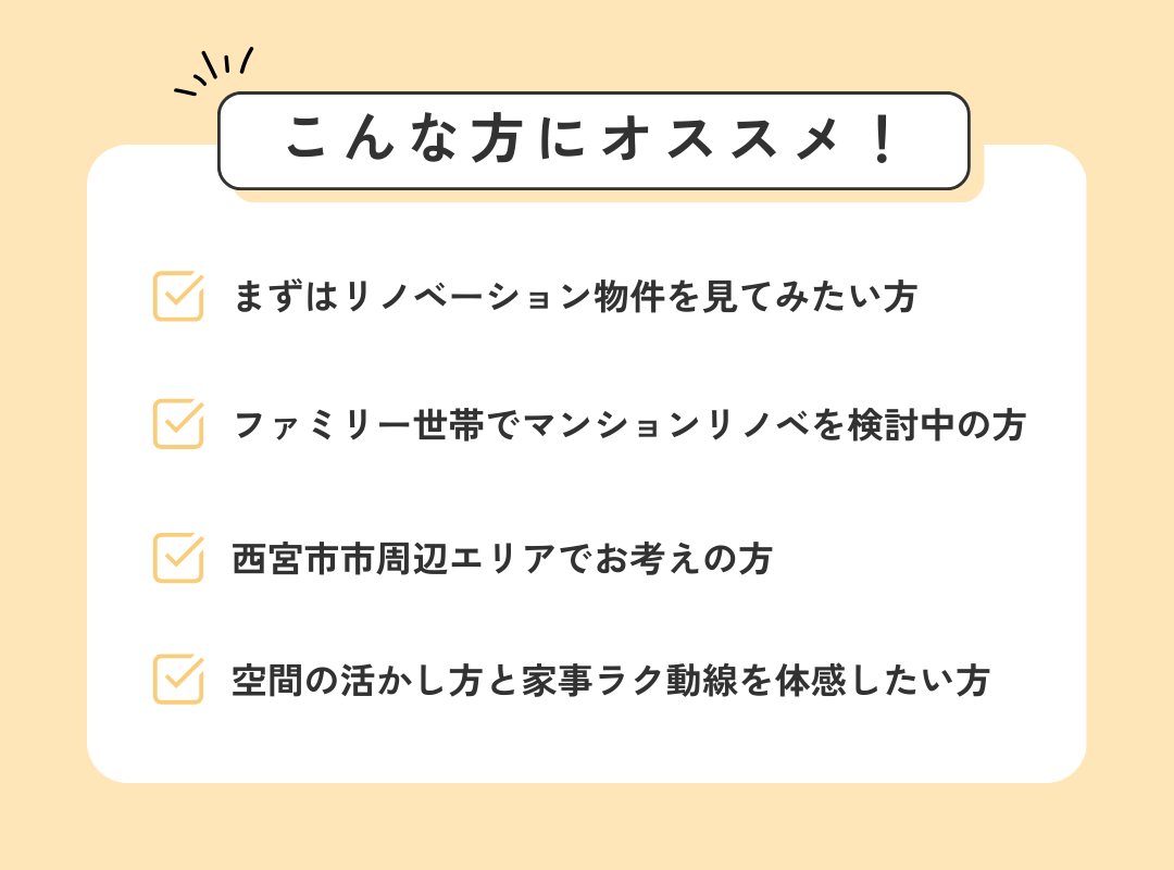 ●今回の見学会は、現在リノベーションをご検討中の方に限りご参加いただけます。