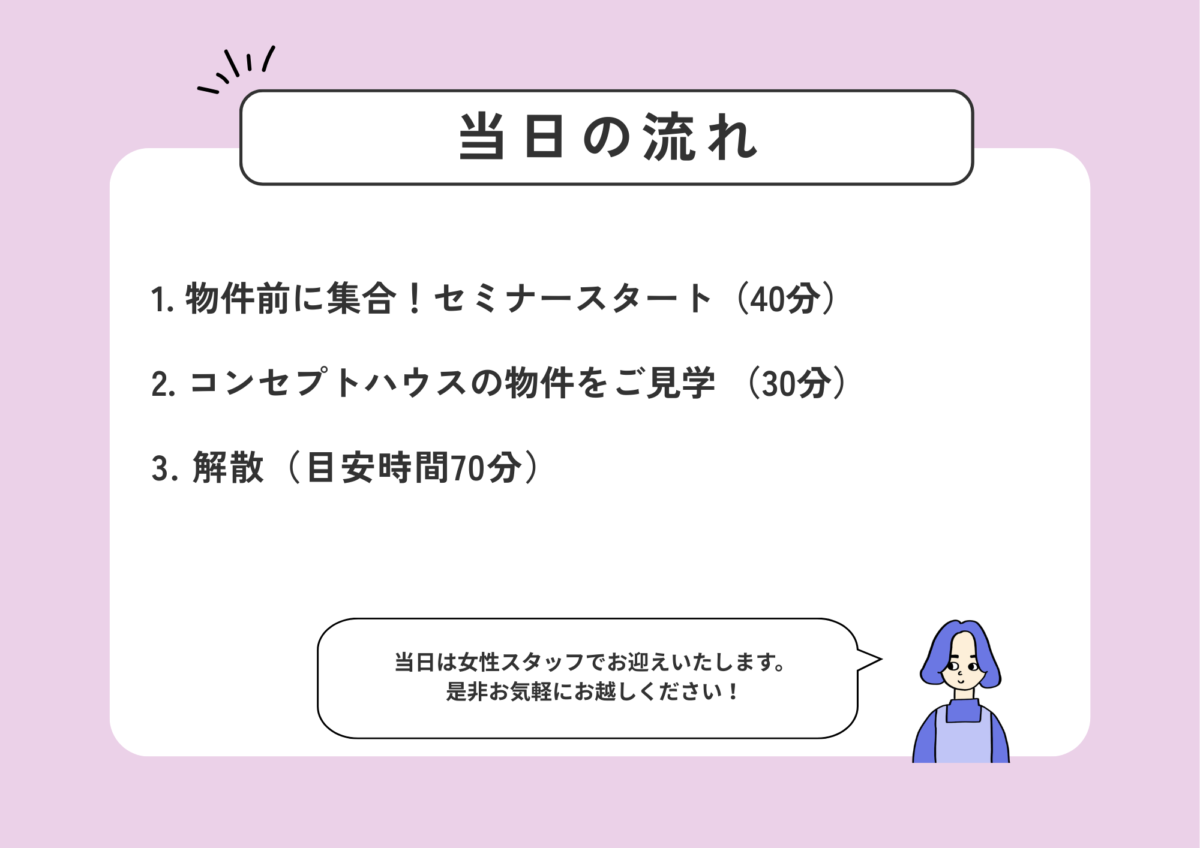 女性が抱えるお悩みをセミナー形式で、「お金のこと」「物件選びのこと」「リノベーション工事のこと」をお伝えします。
