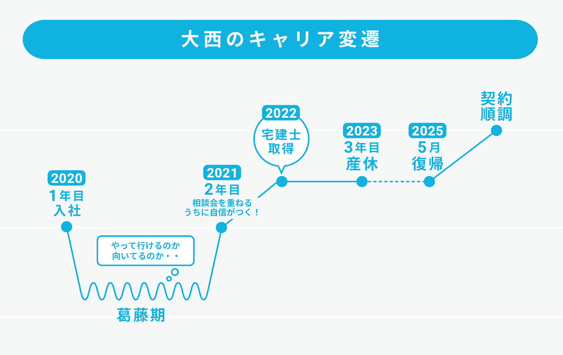 他社と迷われていたお客様が、最後に「大西さんを信じて任せてよかった」と言ってくださった瞬間は、本当に胸がいっぱいになりました。