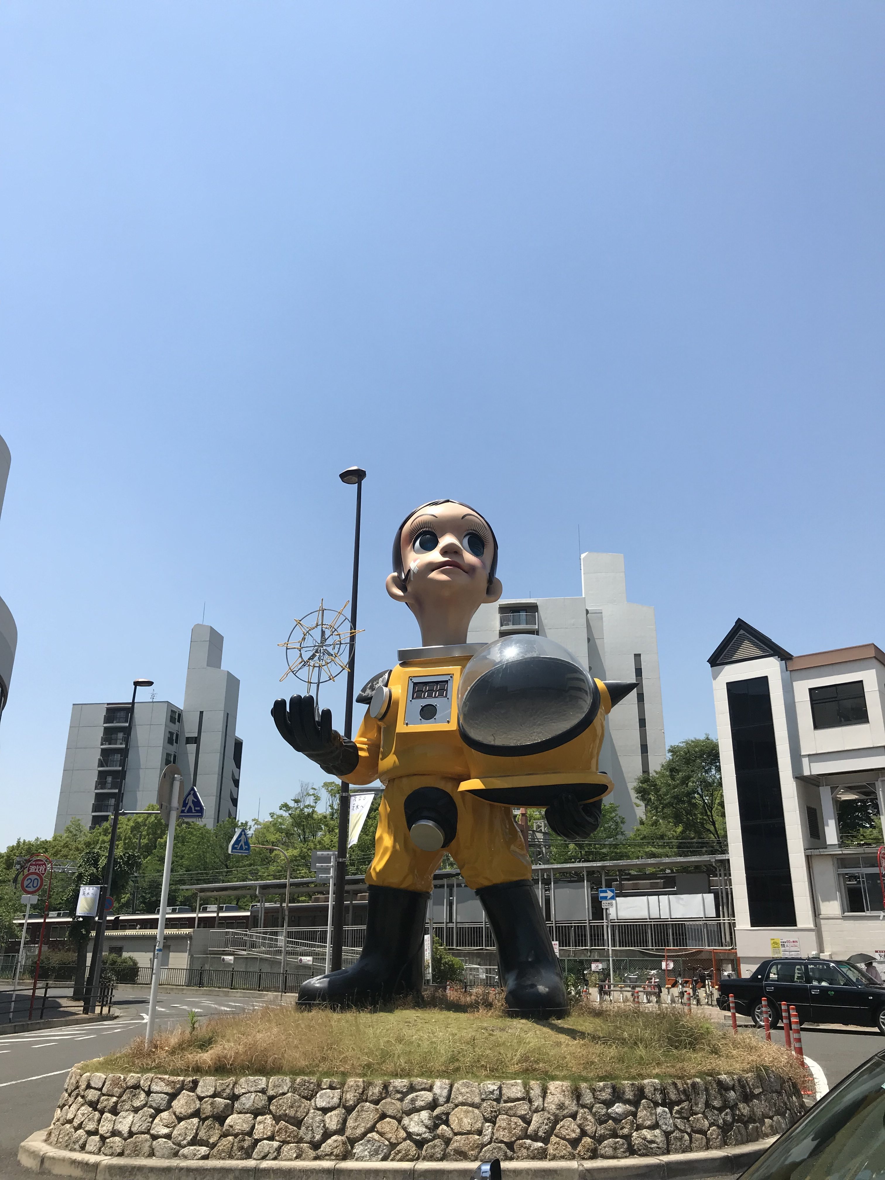南茨木駅にあるSUN CHILDの像がバシッと映える快晴。
