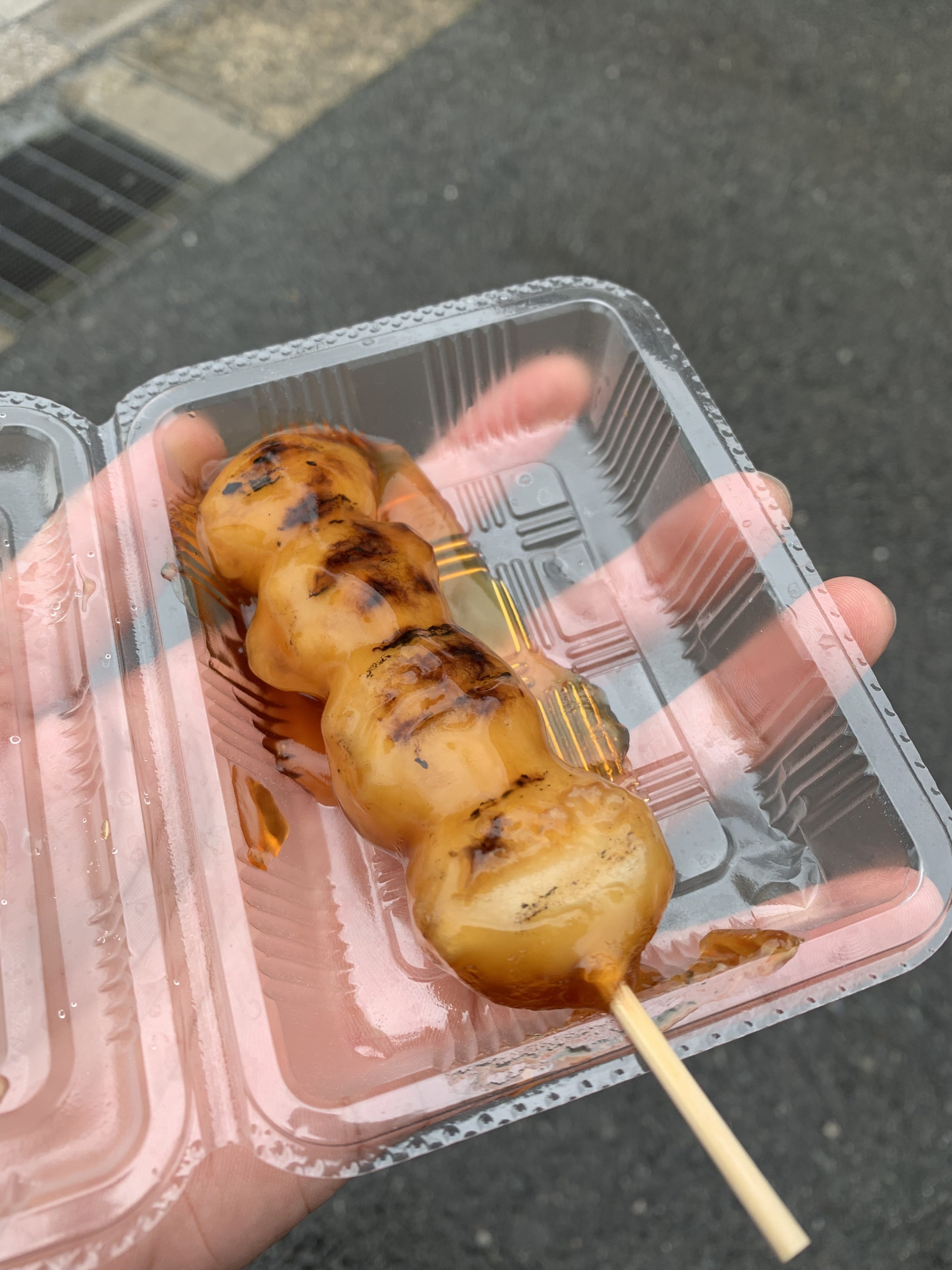 その後に不動産メンバーの村田とひっそり、事務所近くの「御菓子司 静月」さんで1本60円のみたらし団子を食べて昼休憩のシメ。