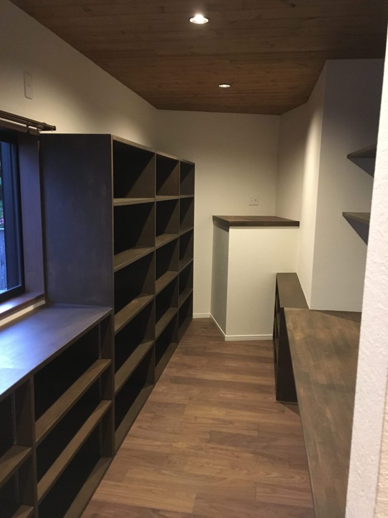 大きな本棚を備え付けたワークスペース、