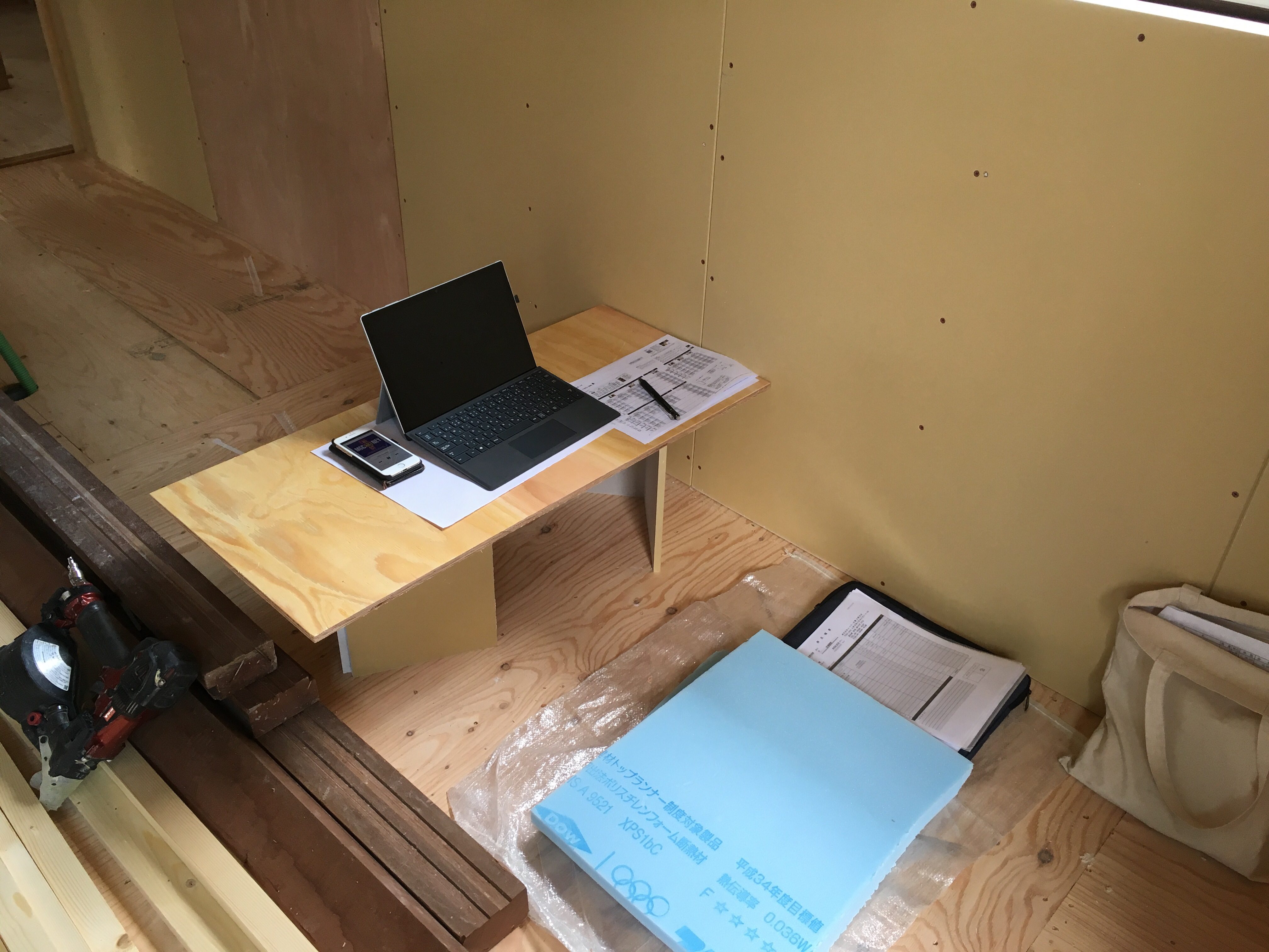 優しい大工さんが即席デスクを作ってくれました!