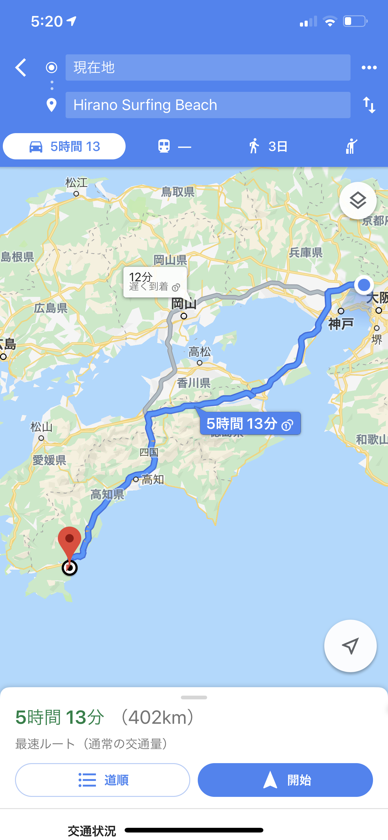 大阪から約400kM。